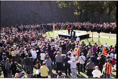 Disfrutando del sol cerca del castillo de Mont Juic.